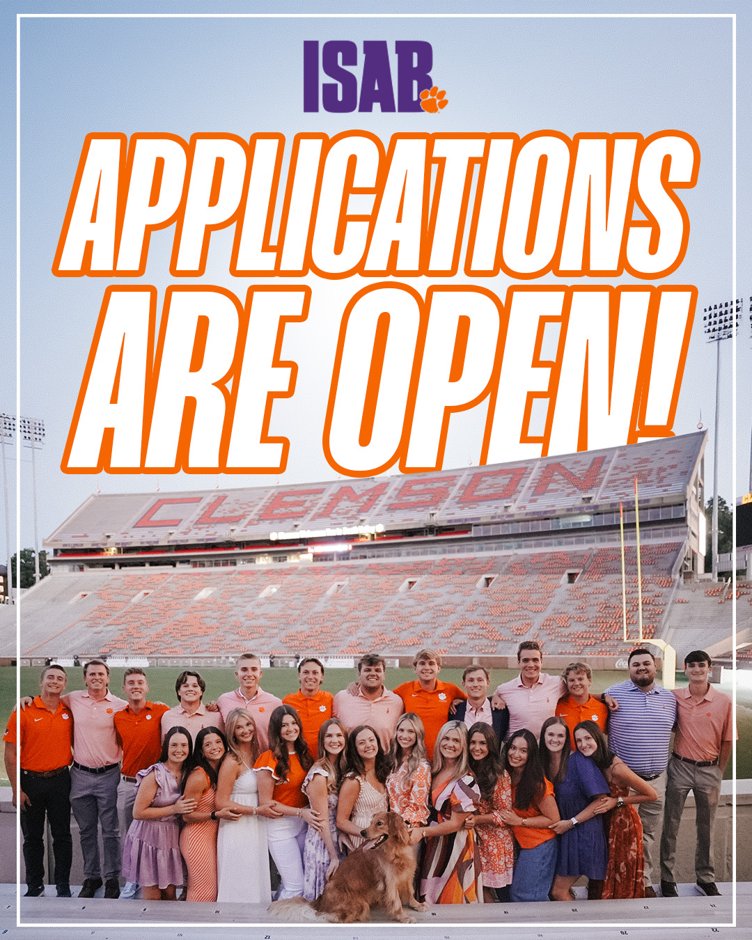 Applications for open seats on the IPTAY Student Advisory Board (ISAB) opened on Monday, February 16, for current Clemson students. The IPTAY Student Advisory Board is made up of a select group of current Clemson students who serve as liaisons between the student body and IPTAY. ISAB enables IPTAY to connect with the students on campus to better educate the general student body on the organization’s mission to support Clemson student-athletes. ISAB initiatives include building the IPTAY Collegiate Club brand, growing the membership base, hosting member events and promoting benefits, and promoting the Solid Orange message on campus.